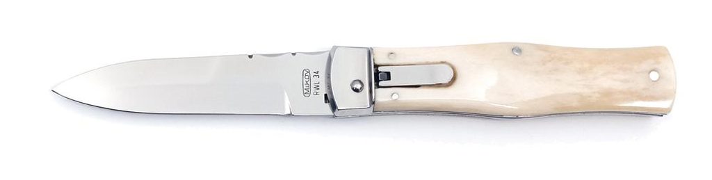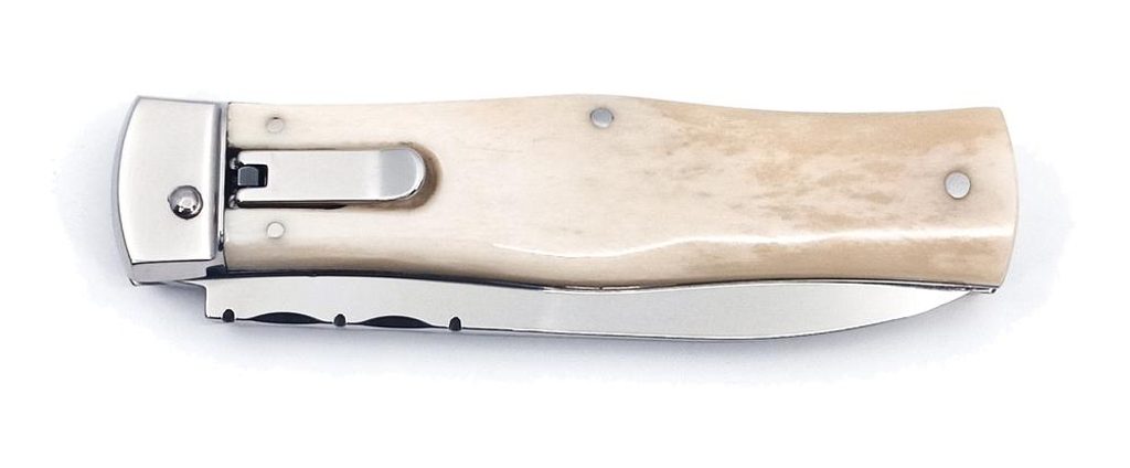 Predator je automatický vrhací nôž, ktorý sa pýši originálnym dizajnom a luxusnými materiálmi. Čepeľ noža je vyrobená z kvalitnej švédskej nehrdzavejúcej ocele RWL 34 s tvrdosťou 58-61 HRc, ktorá sa vyznačuje vysokou tvrdosťou a reznosťou. Pozornosť upúta aj zdobené chrbtové pero a elegantné puzdro z pravej ťavej kosti, ktoré vďaka svojmu tvaru zaručuje pevné a bezpečné uchopenie noža. Luxusný dizajn noža ide ruka v ruke s jeho tvrdosťou a vysokou odolnosťou.