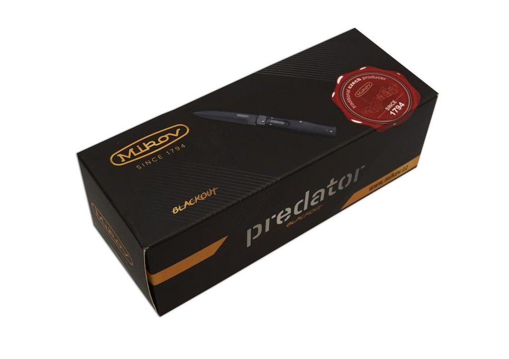 Predator Blackout je automatický vrhací nôž, ktorý sa môže pochváliť originálnym dizajnom a kvalitnými materiálmi. Čepeľ noža je vyrobená z nehrdzavejúcej ocele N690 s tvrdosťou 57-60 HRc, ktorá sa vyznačuje vysokou odolnosťou a spoľahlivosťou, a rovnako ako ostatné kovové časti je potiahnutá čiernou DLC vrstvou. Čepeľ noža je vyrobená z odolného, ergonomicky tvarovaného plastu.