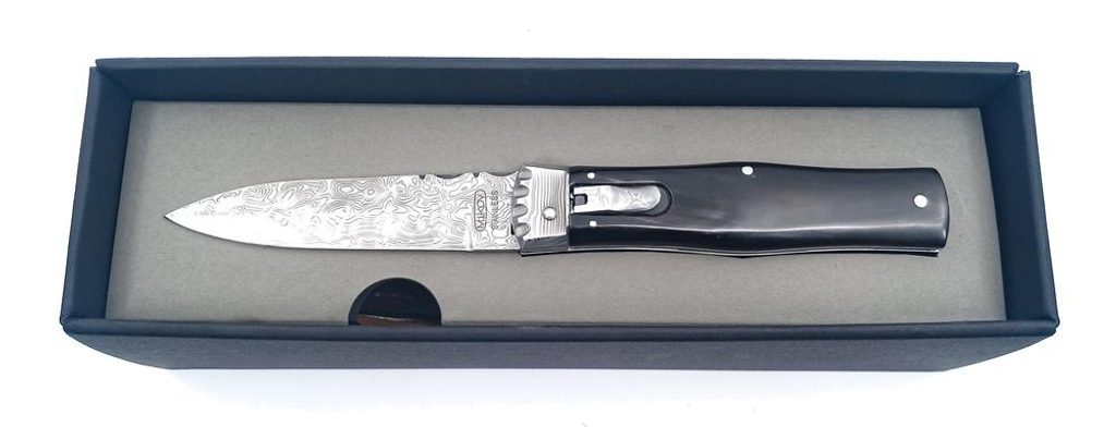Predator Panther je automatický vrhací nôž, ktorý sa pýši originálnym dizajnom a luxusnými materiálmi. Čepeľ noža je vyrobená z damaškovej nehrdzavejúcej ocele PMC 27 s tvrdosťou 57-60 HRc, ktorá je na výrobu čepelí najviac ceneným materiálom. Pozornosť upúta aj zdobené chrbtové pero a elegantné puzdro z pravej byvolej rohoviny s jedinečným vzorom, ktoré vďaka svojmu tvaru zaručuje pevné a bezpečné uchopenie noža. Luxusný dizajn noža ide ruka v ruke s jeho pevnosťou a vysokou odolnosťou.