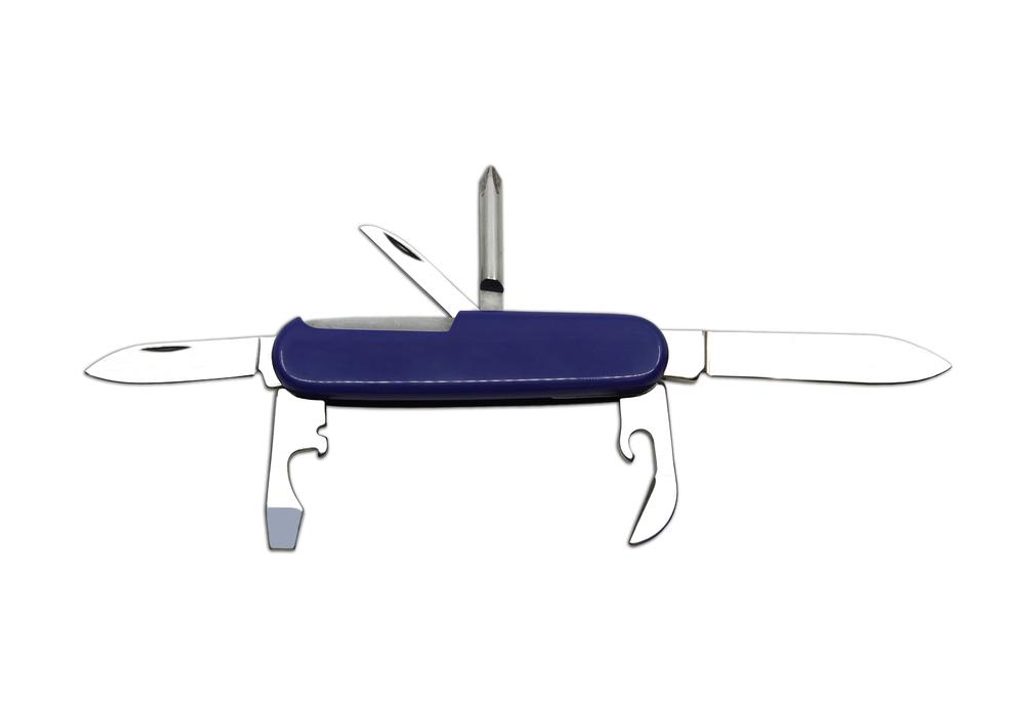 Okrem malej a veľkej čepele je nôž vybavený aj otváračom na fľaše, otváračom na konzervy, skrutkovačom, odizolovačom, bodcom a krížovým skrutkovačom.