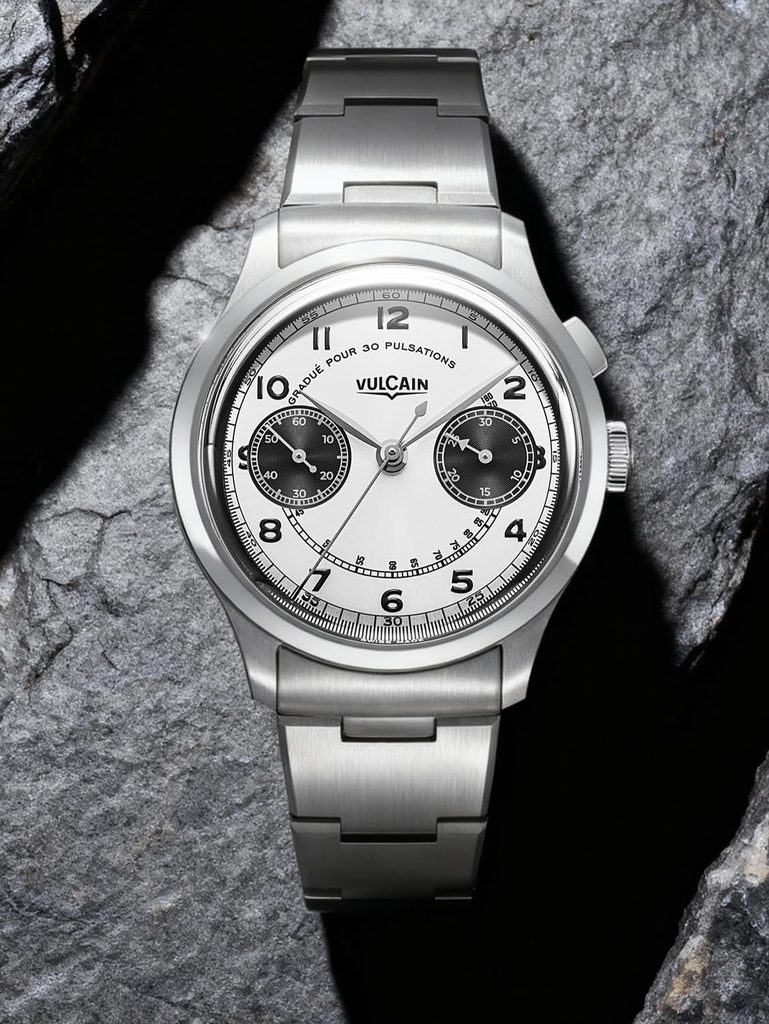 Na počesť tejto slávnej športovej histórie spoločnosť Vulcain znovu vydáva svoj ikonický chronograf z 50. rokov minulého storočia. Táto nová iterácia s názvom "Monopusher" má kompaktnejšie 39 mm puzdro.
