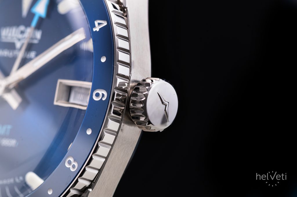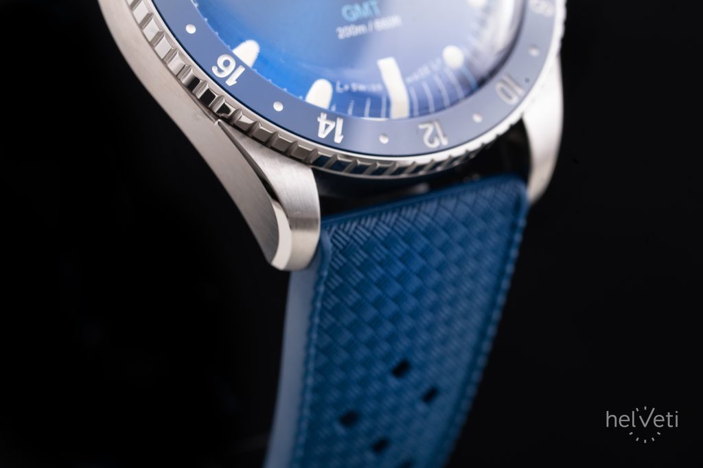 Hodinky Skindiver Nautique GMT si zachovávajú svoj retro šarm a zostávajú verné kompaktným proporciám, ktoré stáli za úspechom originálu: priemer 38,3 mm a hrúbka len 12,2 mm - pozoruhodné na automatické hodinky GMT. Dvojvrstvové zafírové sklíčko a modrý ciferník doplnený ručičkami a indexmi s bielou luminiscenciou Super-LumiNova® zaručujú dokonalú čitateľnosť za všetkých podmienok. Otočná luneta má modrú keramickú vložku s ostrými bielymi číslicami, funkčnosť potom podčiarkuje nadčasový štýl.