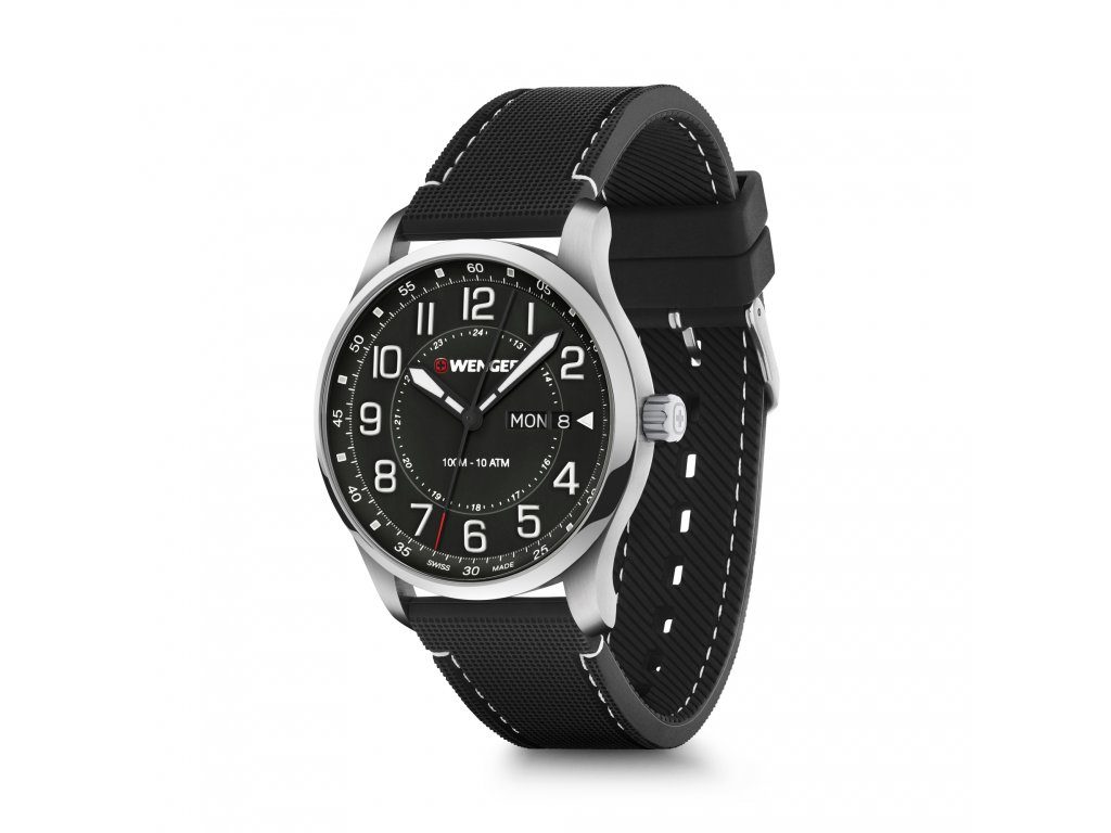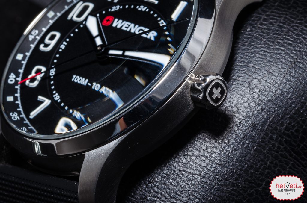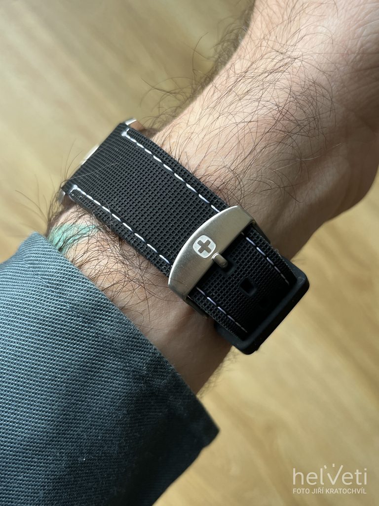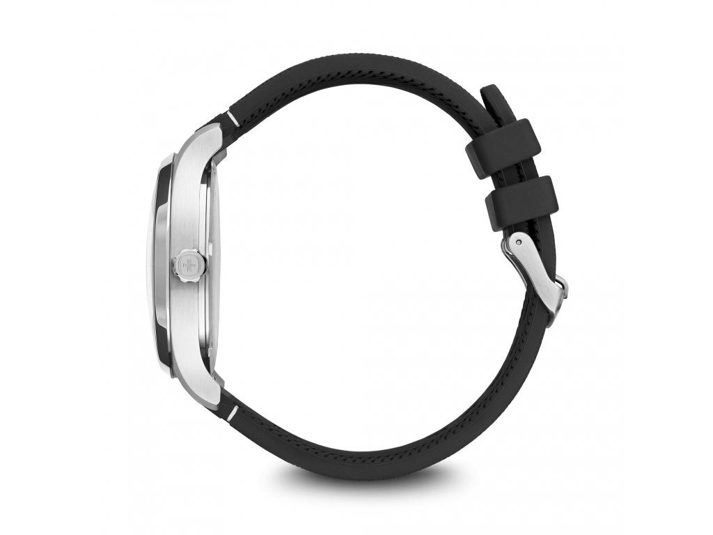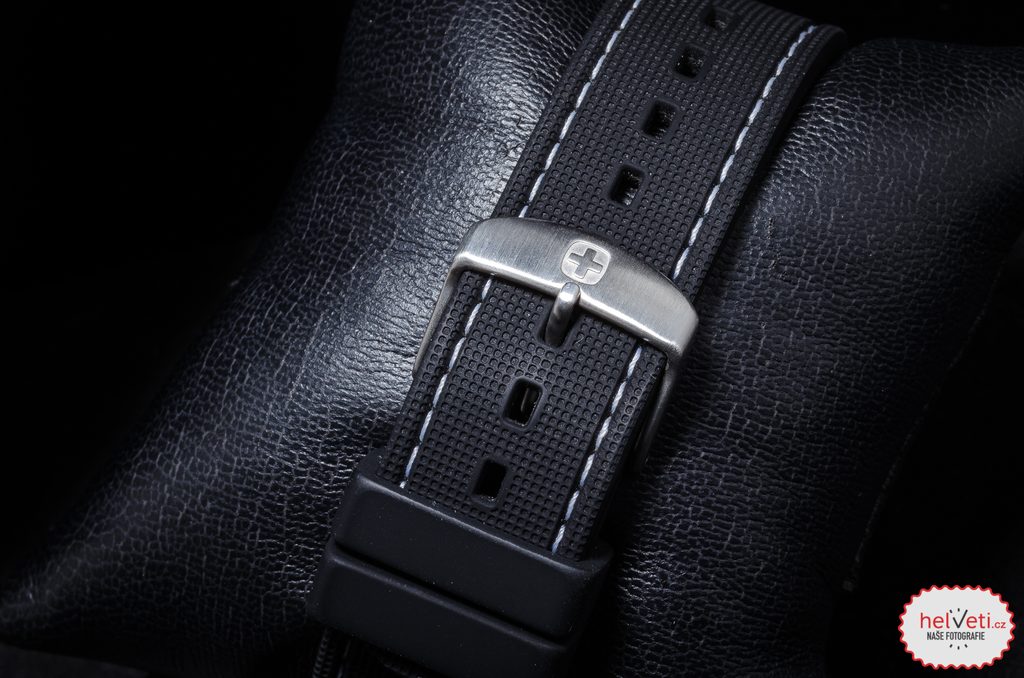 Hodinky vám budú držať na zápästí vďaka gumovému remienku. Jednoduchú výmenu popruhov zabezpečuje rýchloupínací systém. Za zmienku stojí aj signovaná korunka so švajčiarskym krížom umiestnená klasicky na pravej strane puzdra. Ako sme u spoločnosti Wenger zvyknutí, myslí sa aj na praktickú stránku veci, a preto sú hodinky vodotesné do 10 ATM. Vďaka tejto vodotesnosti sa nemusíte obávať ísť s hodinkami do bazéna alebo do mora.