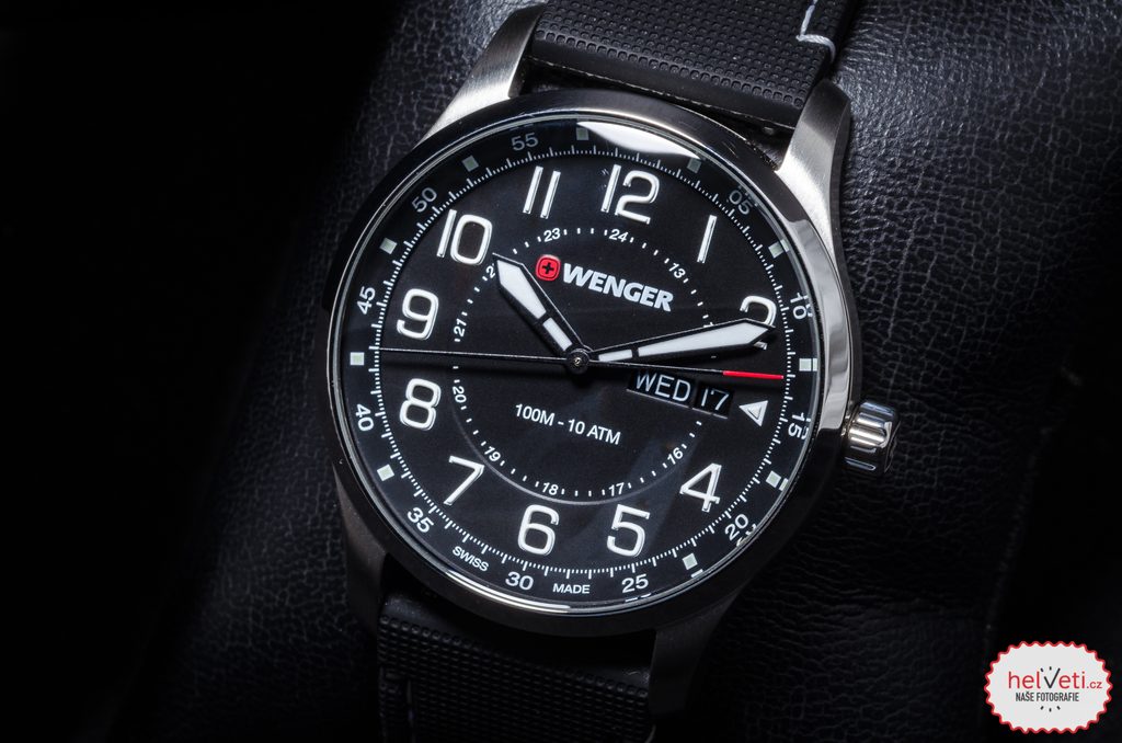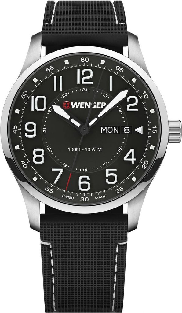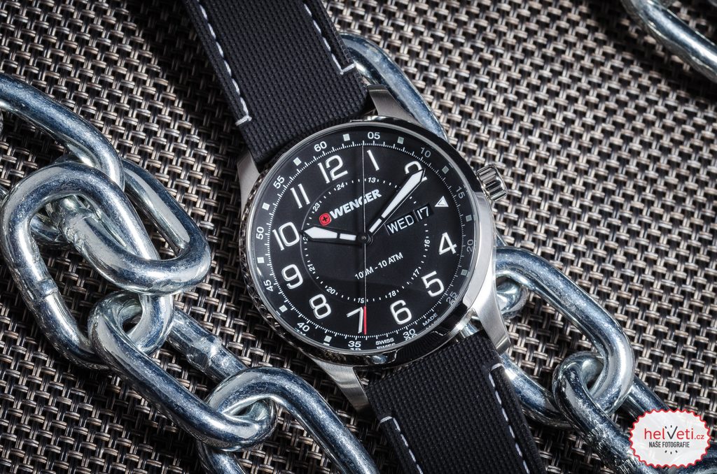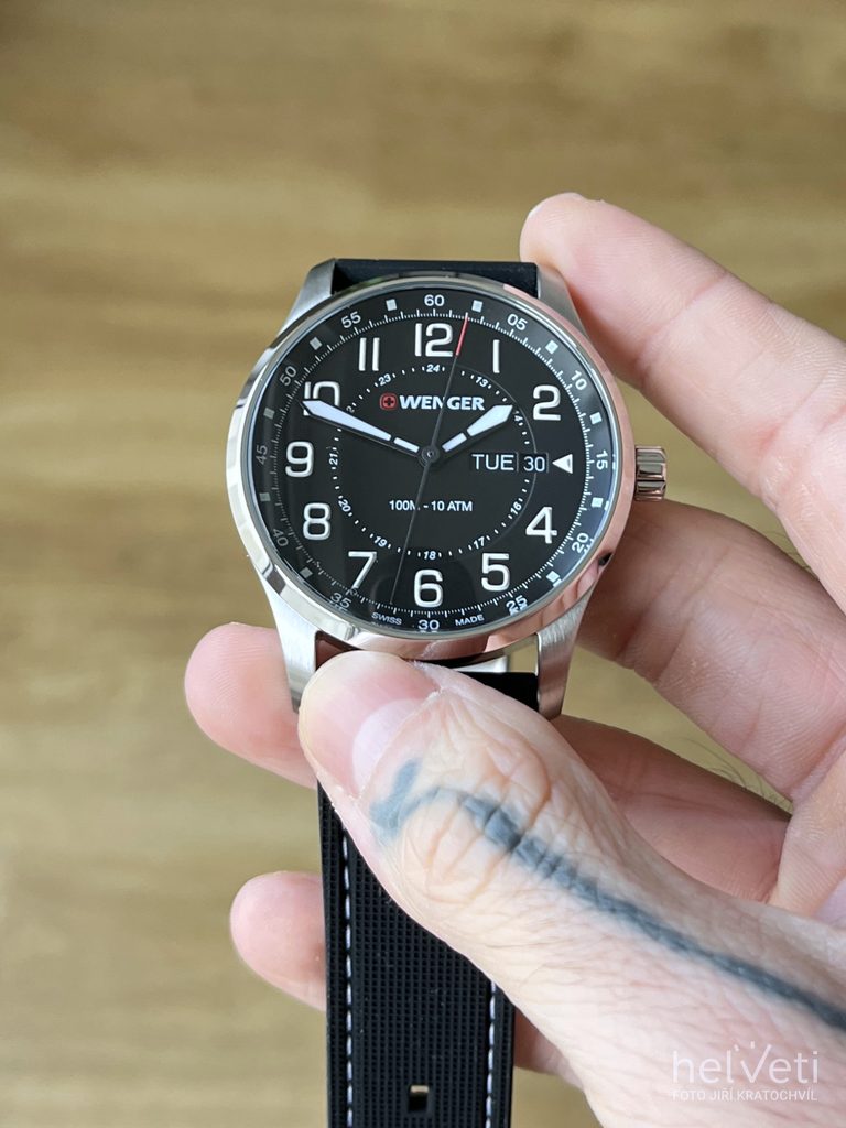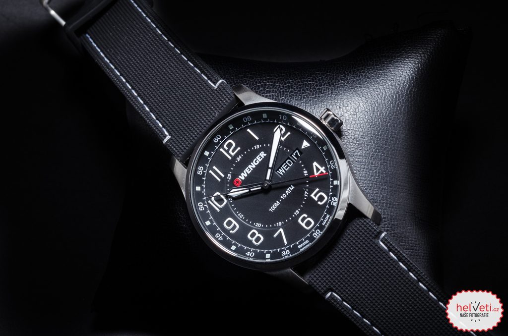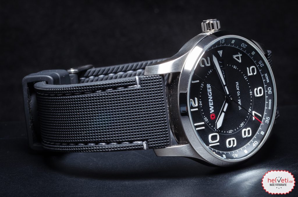 Hodinky vám budú držať na zápästí vďaka gumovému remienku. Jednoduchú výmenu popruhov zabezpečuje rýchloupínací systém. Za zmienku stojí aj signovaná korunka so švajčiarskym krížom umiestnená klasicky na pravej strane puzdra. Ako sme u spoločnosti Wenger zvyknutí, myslí sa aj na praktickú stránku veci, a preto sú hodinky vodotesné do 10 ATM. Vďaka tejto vodotesnosti sa nemusíte obávať ísť s hodinkami do bazéna alebo do mora.