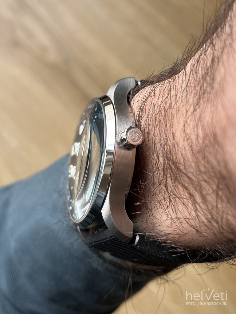 Hodinky poháňa švajčiarsky strojček Ronda 517. Na ciferníku sú reliéfne číslice, ktoré majú vrstvu luminiscencie. Tá sa nachádza aj na hodinovej a minútovej ručičke a na hrotoch na prstenci armatúry. Zaujímavým prvkom je predĺžená sekundová ručička s červeným zakončením, ktorá zobrazuje aktuálnu sekundu. Ciferník dopĺňa ukazovateľ dátumu vrátane dňa v týždni v angličtine alebo nemčine. Indexy v päťminútových intervaloch sú potom elegantne "skryté" na vnútornej lunete a nenarúšajú celkový čistý vzhľad hodiniek. Ciferník hodiniek je vyrobený z minerálneho skla so zafírovou vrstvou.