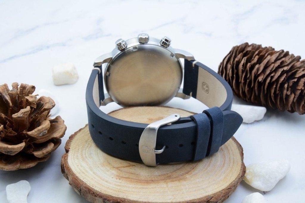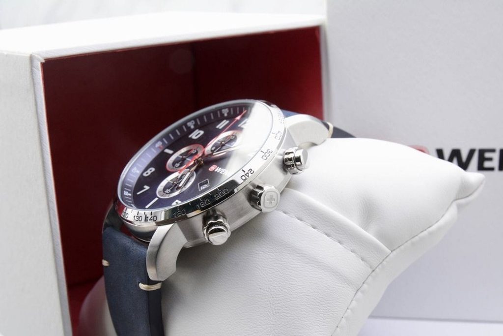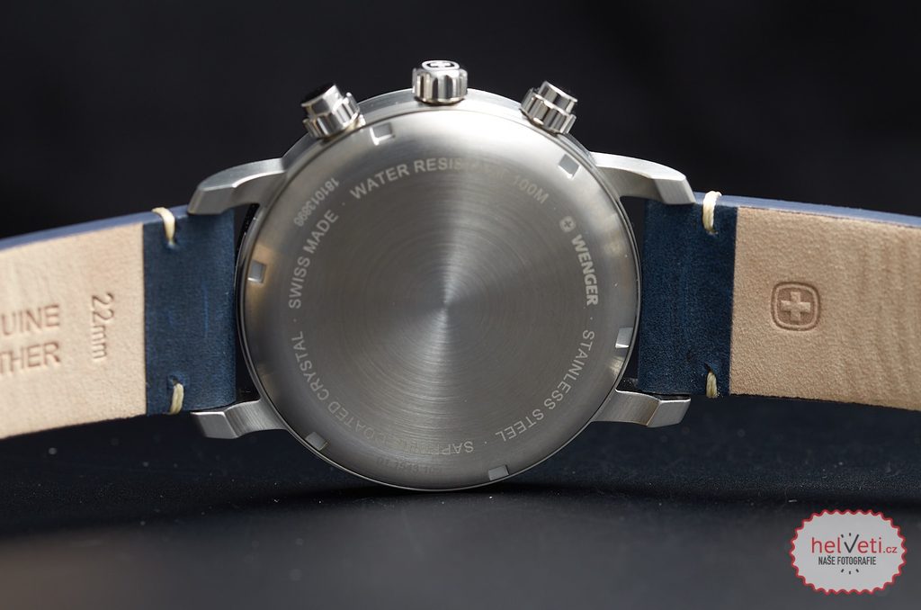 Hodinky Wenger Attitude Chrono 01.1543.109 sa dodávajú s kvalitným koženým remienkom s prešívaním. Hodinky majú športový charakter, okrem iného vďaka vodotesnosti 100 m, ale sú aj vhodným doplnkom k obleku alebo slušivému outfitu.