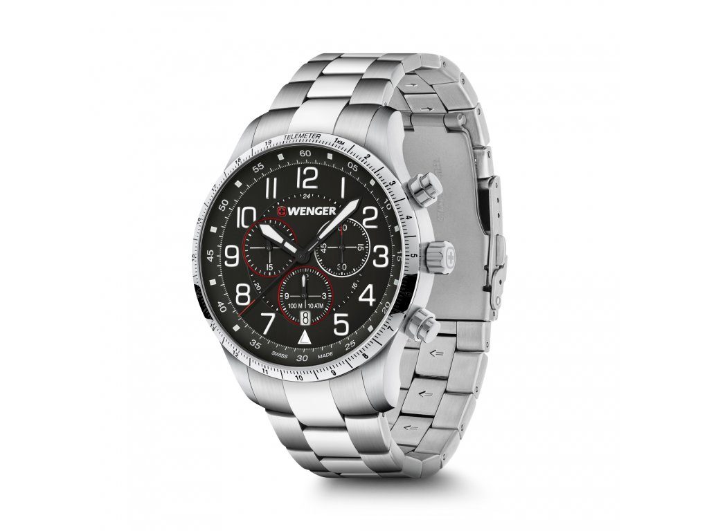 Tieto hodinky vám zostanú na zápästí vďaka oceľovému napínaču, ktorý je vyrobený z nehrdzavejúcej ocele. Jednoduchú výmenu popruhov umožňuje rýchloupínací systém. Za zmienku stojí aj signovaná korunka so švajčiarskym krížom umiestnená klasicky na pravej strane puzdra. Ako sme u spoločnosti Wenger zvyknutí, myslí sa aj na praktickú stránku veci, a preto sú hodinky vodotesné do 10 ATM. Vďaka tejto vodotesnosti sa nemusíte obávať ísť s hodinkami do bazéna alebo do mora.