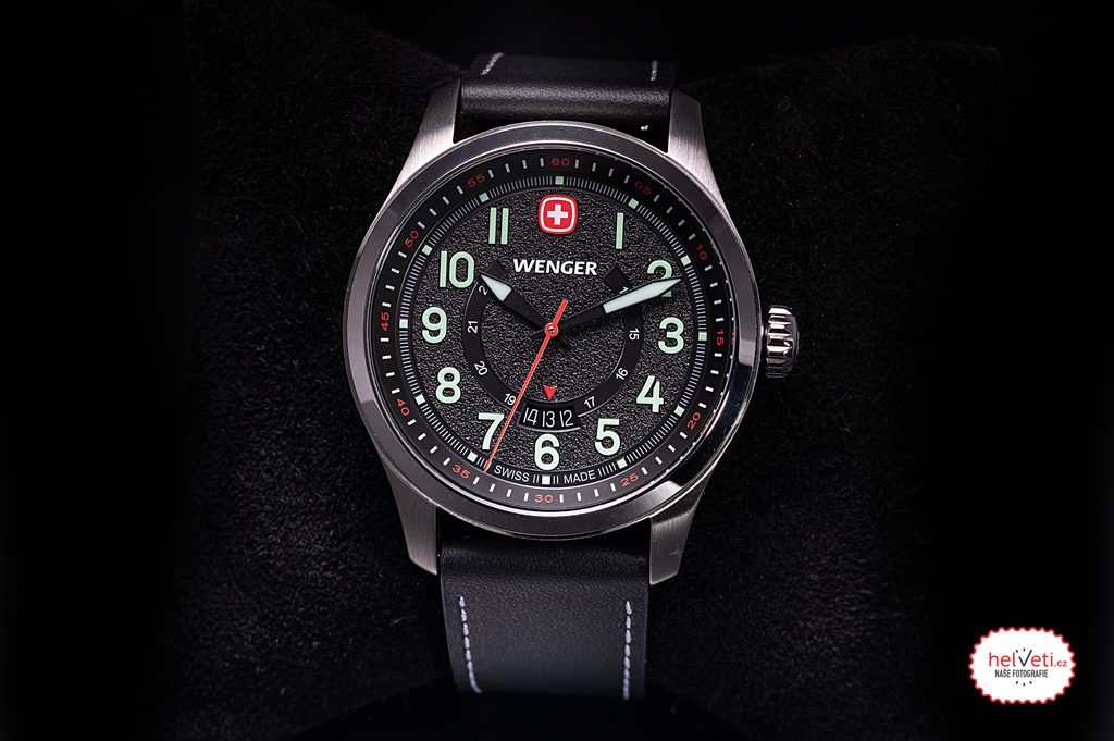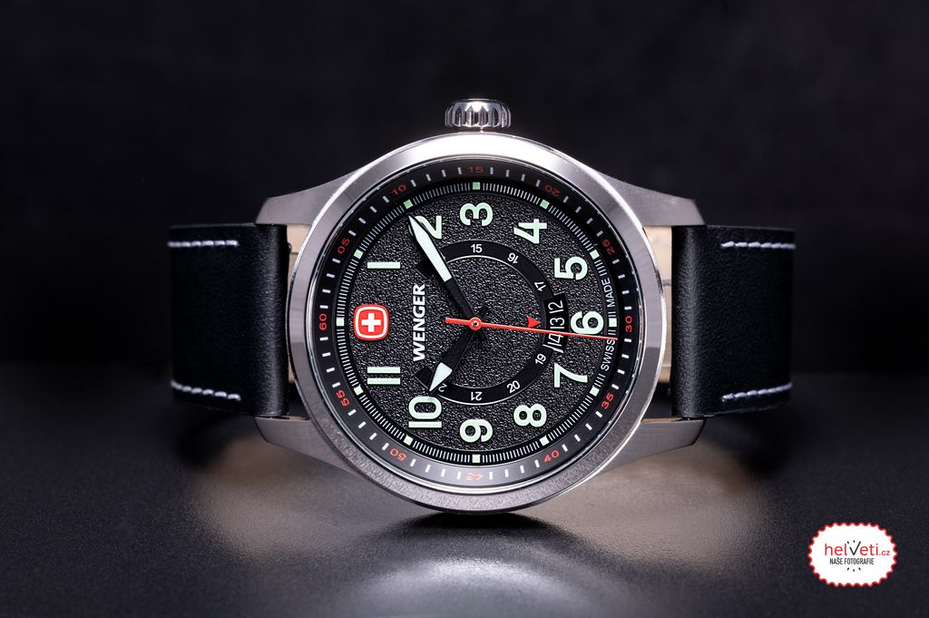 Hodinky vám na zápästí zostanú vďaka koženému remienku. Jednoduchú výmenu remienka zabezpečuje systém zapínania s rýchloupínacími prackami. Za zmienku stojí aj gravírovaná signovaná korunka so švajčiarskym krížom umiestnená klasicky na pravej strane puzdra. Ako sme u značky Wenger zvyknutí, aj tu sa myslí na praktickú stránku veci, a preto sú hodinky vodotesné do 10 ATM. Vďaka tejto vodotesnosti sa nemusíte obávať ísť si s hodinkami zaplávať.