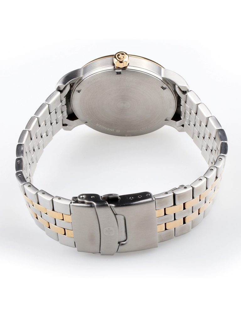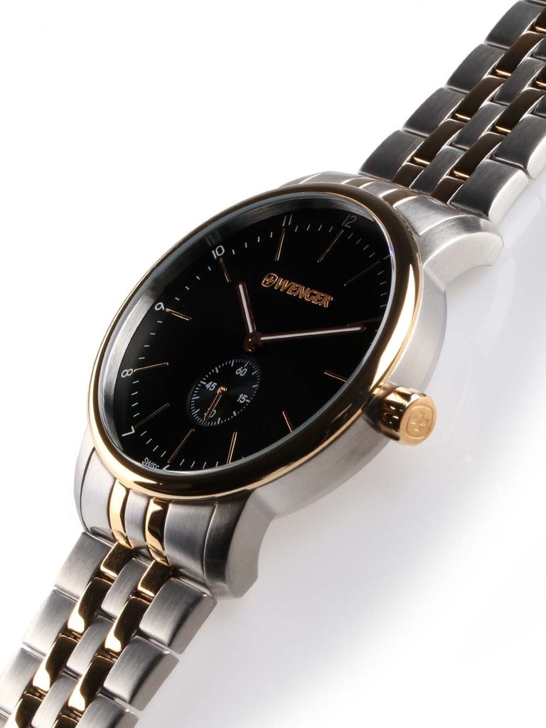 Hodinky v spoločenskom štýle WengerUrban Classic 01.1741.104 majú prehľadný ciferník, ktorý je zvýraznený sekundovou ručičkou mimo stredu. Hodinky Wenger Urban Classic majú vodotesnosť 100 m a minerálne sklíčko so zafírovou vrstvou. Puzdro hodiniek a strojček sú oceľové, s povrchovou úpravou PVD pozlátením. Hodinky majúšvajčiarsky strojček Ronda 1069, ktorý je napájaný batériou.