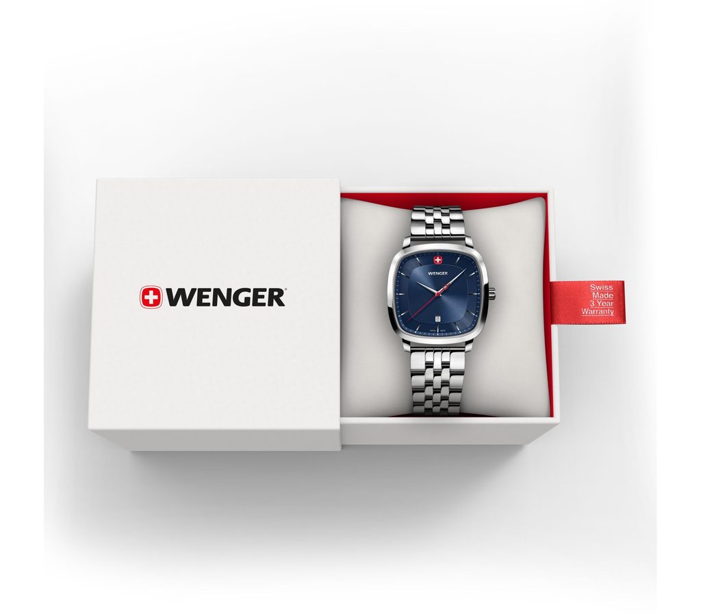 Novo predstavený rad Vintage Classic má inovatívne puzdro v tvare štvorca, ktoré má rovnaký tvar ako samotné logo Wenger. Hodinky majú klasický ciferník so striebornými indexmi a okienko s dátumovkou na 6. hodine.