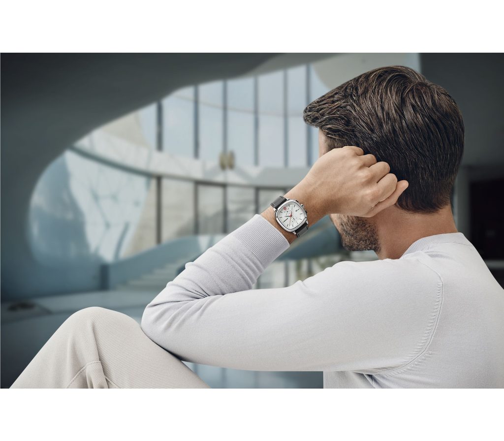 Hodinky vám na zápästí zostanú vďaka koženému remienku. Jednoduchú výmenu remienka zabezpečuje systém zapínania s rýchloupínacími prackami. Za zmienku stojí aj signovaná korunka so švajčiarskym krížom umiestnená klasicky na pravej strane puzdra. Vodotesnosť týchto elegantných hodiniek je 5 ATM. Vďaka tejto vodotesnosti hodinky vydržia letmý kontakt s vodou, ktorý možno prirovnať napríklad k striekajúcej vode, dažďu a pod.