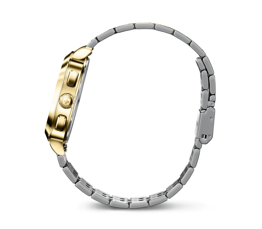 Hodinky vám na zápästí zostanú vďaka oceľovému náramku s PVD úpravou, ktorý je vyrobený z ušľachtilej ocele. Jednoduchú výmenu remienka zabezpečuje rýchloupínací systém. Za zmienku stojí aj signovaná korunka so švajčiarskym krížom umiestnená klasicky na pravej strane puzdra. Vodotesnosť týchto elegantných hodiniek je 5 ATM. Vďaka tejto vodotesnosti hodinky vydržia letmý kontakt s vodou, ktorý možno prirovnať napríklad k striekajúcej vode, dažďu a pod.