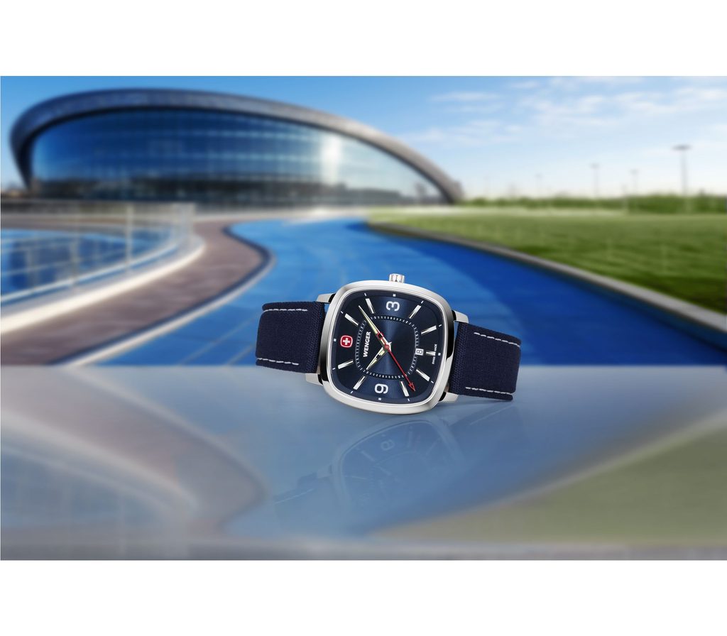 Novo predstavený rad Vintage Sport má inovatívne puzdro v tvare štvorca, ktoré má rovnaký tvar ako samotné logo Wenger. Hodinky majú klasický ciferník so striebornými indexmi a okienko s dátumovkou na 6. hodine.